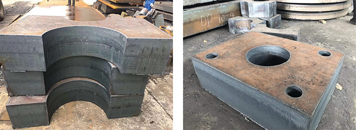 鋼板切割:  承接機械配套機加工,主營Q235B、Q345B、45#鋼等材質的鋼板切割與加工。可按客戶圖紙要求進行鋼板切割異型件、切割法蘭圓盤毛坯件、仿形件。鋼板外協加工各類機械零部件、模具鋼、軸承座、齒輪盤、鋼結構及焊接預埋件、起重及升降鋼板配重塊。鋼板切割件產品主要應用于重型機械設備,如造船、紡織、采礦機械、機床、鍛壓、發電設備、冶金機械制造等領域。的優勢在于特厚鋼板的切割及深加工業務中能大量替代鍛、鑄件。有效的減少了在制造大型機械設備配件、齒輪箱、軋機牌坊,軸承座方面的加工量,同時為廣大廠家減少鋼板加工零部件的工序和加工成本。